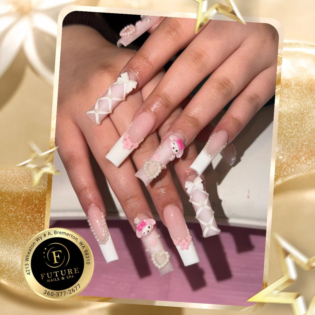 Future Nails & Spa is a nail salon in Bremerton, WA 98310 that offers a variety of services for your nails, such as Mani, Pedi, Polish Change or Acrylic and more. Whether you need a simple manicure or a fancy nail art, Future Nails & Spa can help you achieve your desired look